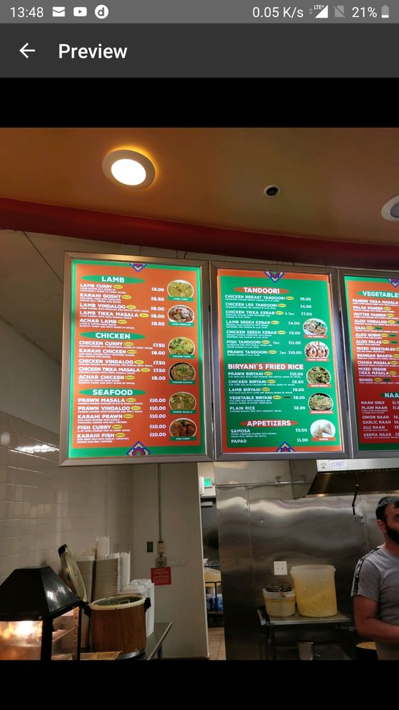 The menu boasts a vibrant selection, starting with Chicken Tikka Masala and Karahi Chicken, each brimming with rich flavors and spices. For lamb lovers, options like Lamb Vindaloo and Lamb Tikka Masala shine with their savory profiles. Don’t miss the appetizers; the Samosa and Pakora serve as the perfect preludes to your meal.